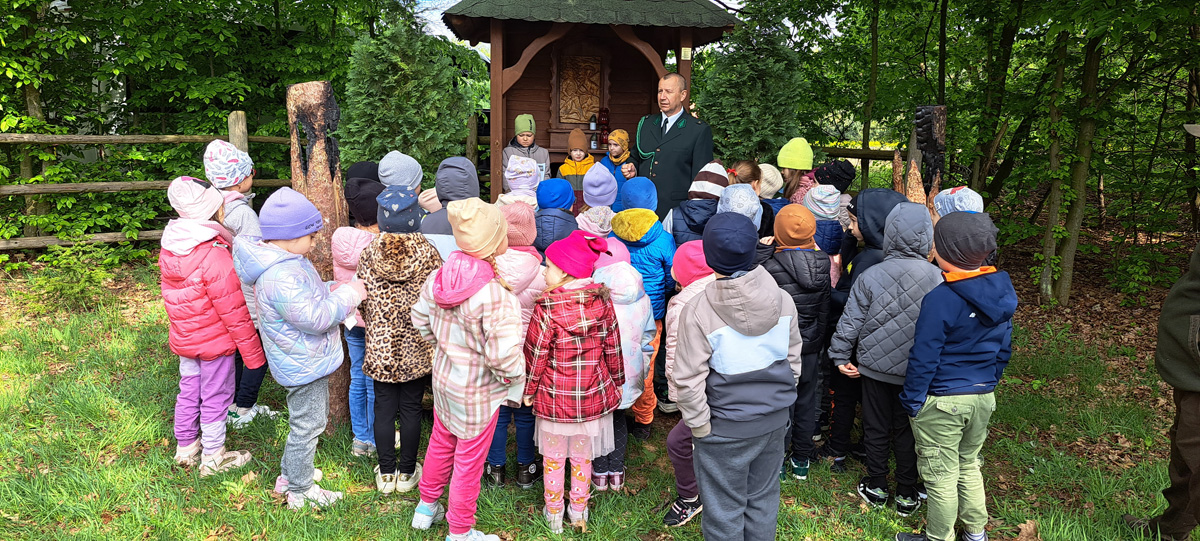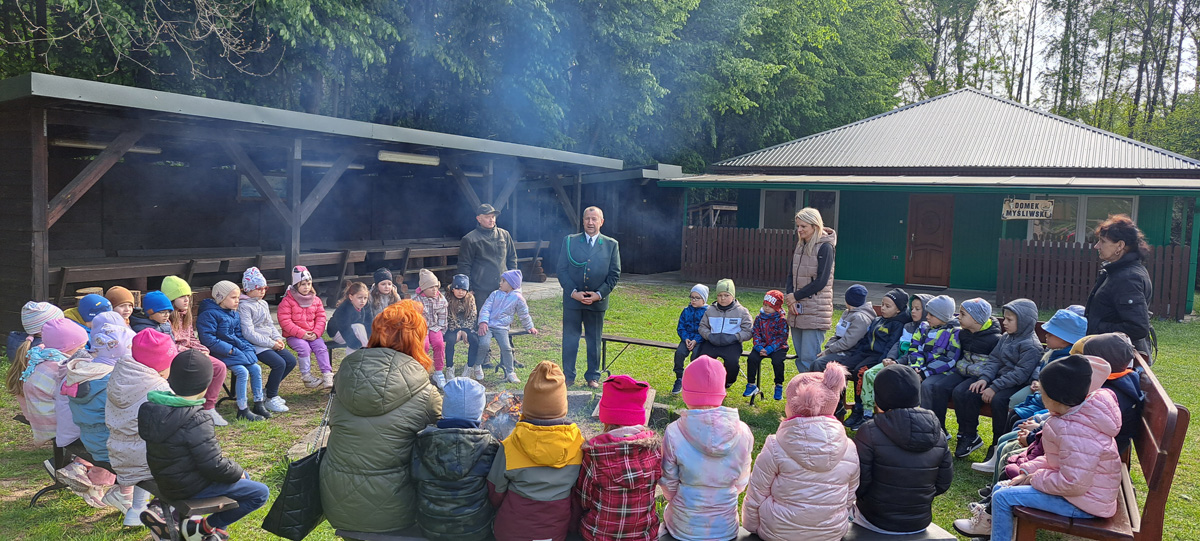 W dniu 19.04.2024 gościliśmy w Domku Myśliwskim Koła Łowieckiego 'DIANA’ Mielec dzieci z Samorządowego Przedszkola z Rzemienia. Gospodarz spotkania kol.Maciej Rachwał po przywitaniu około 50 miłych gości przedstawił postać patrona myśliwych i leśników Św.Huberta. Opowieść o Hubercie przy jego kaplicy wzbudziła wielkie zainteresowanie. W spotkaniu uczestniczyli również przedstawiciele;